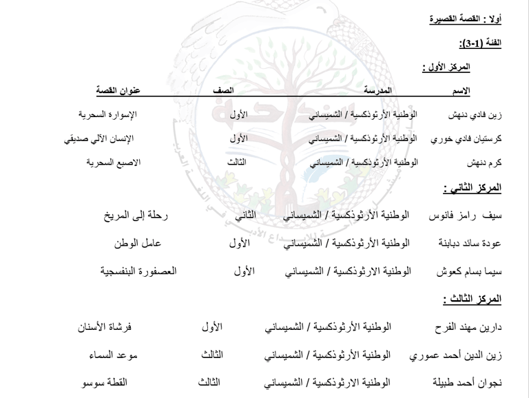 انقر هنا لتنزيل اعمال الطلبة الفائزين في القصّة