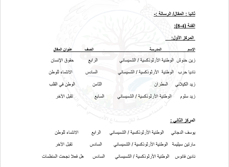 انقر هنا لتنزيل أعمال الطّلبة الفائزين في المقال