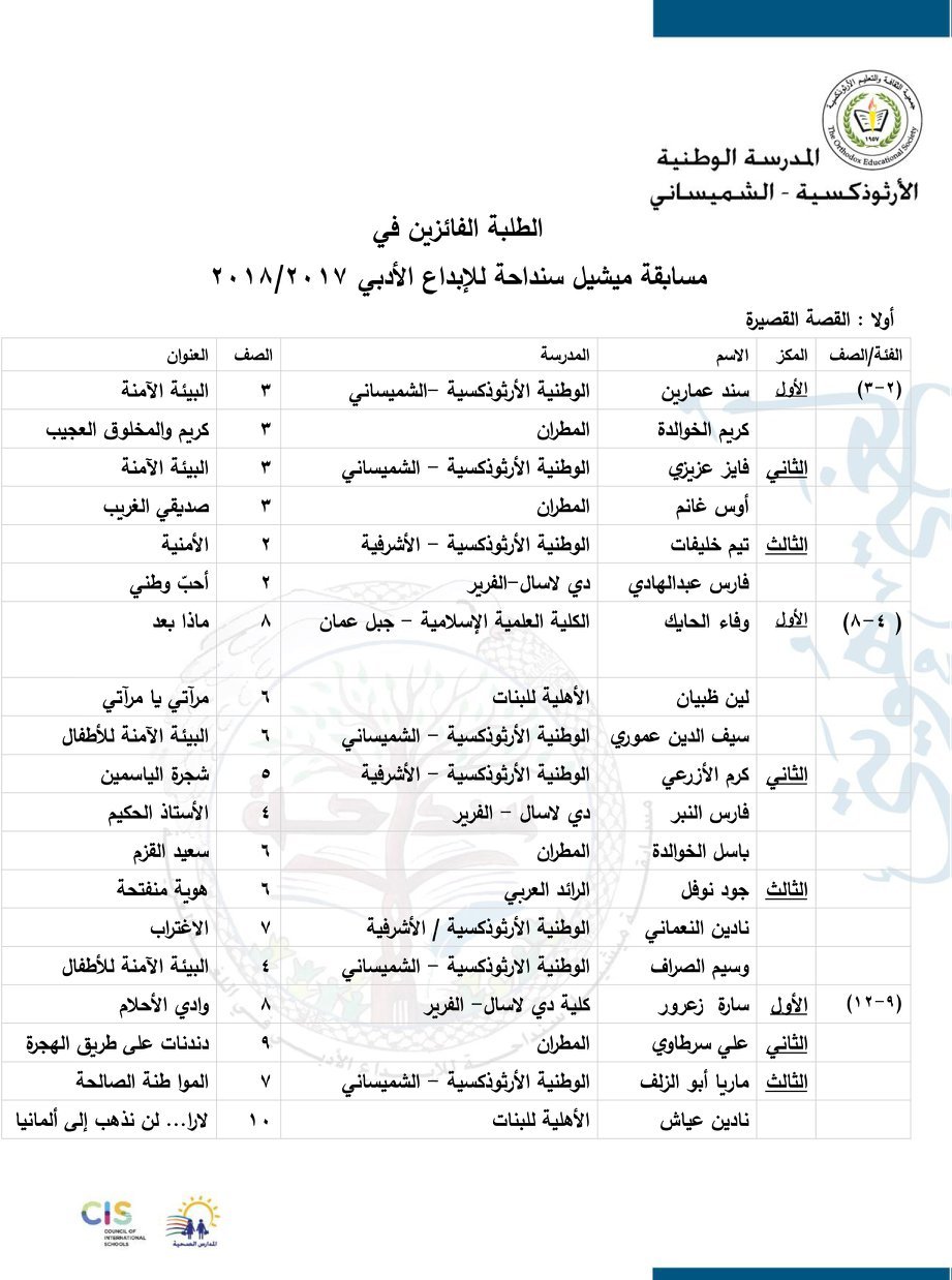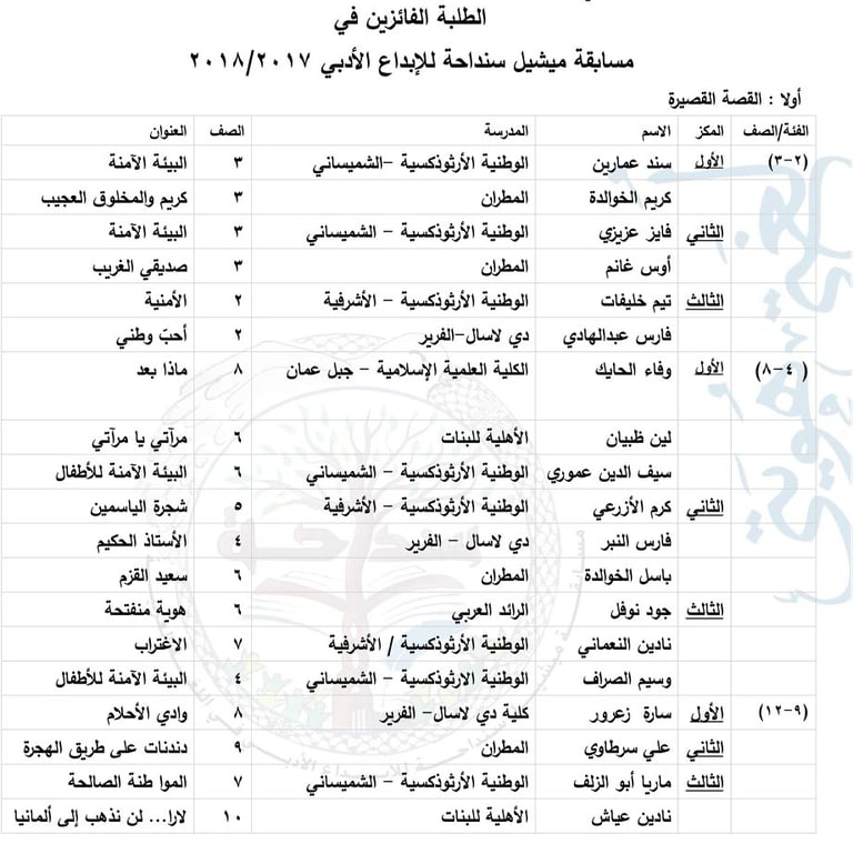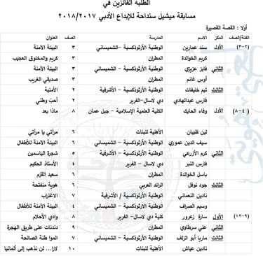 الطّلبة الفائزون في القصّة 2018/2017