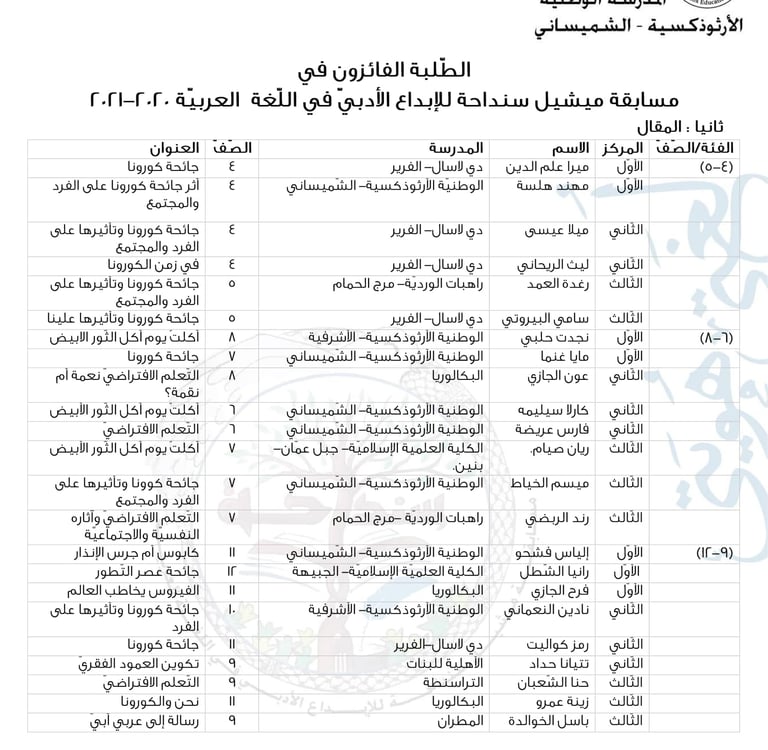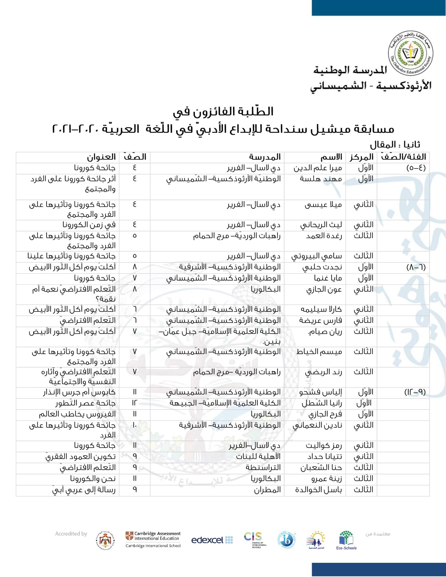 انقر هنا لتنزيل أعمال الطّلبة الفائزين في المقال