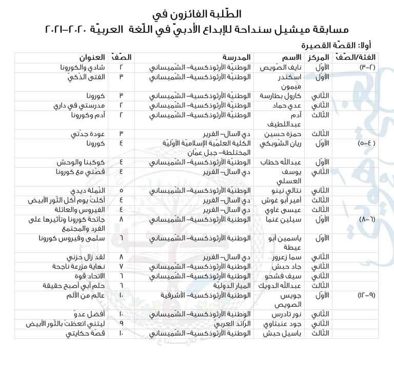 انقر هنا لتنزيل اعمال الطّلبة الفائزين في القصّة