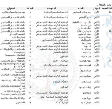 الطّلبة الفائزون في المقال 2022/2021