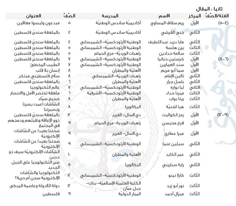 انقر هنا لتنزيل أعمال الطّلبة الفائزين في المقال
