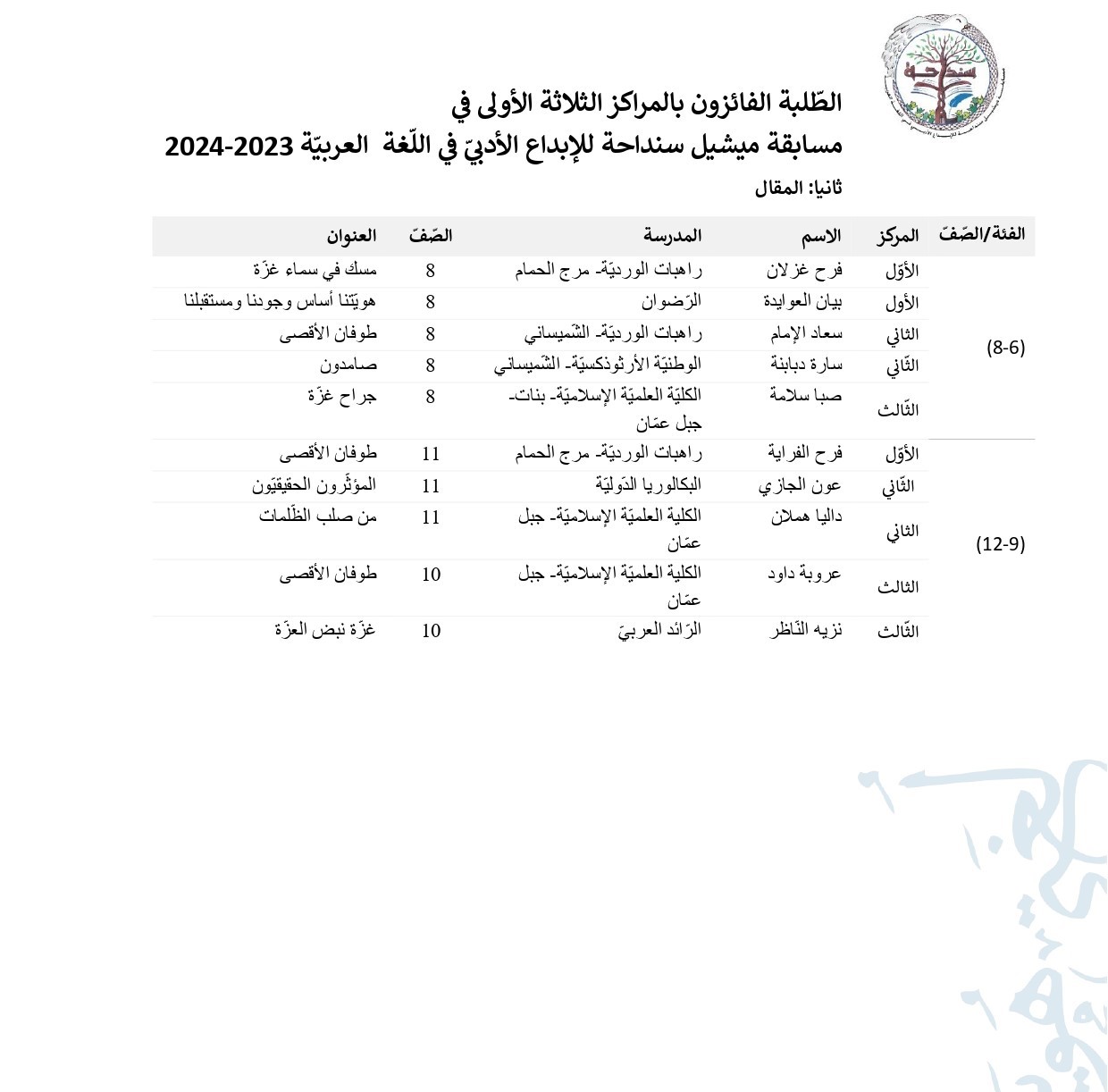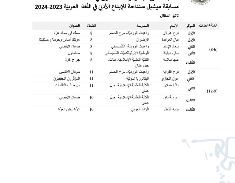 الطّلبة الفائزون في المقال 2024/2023