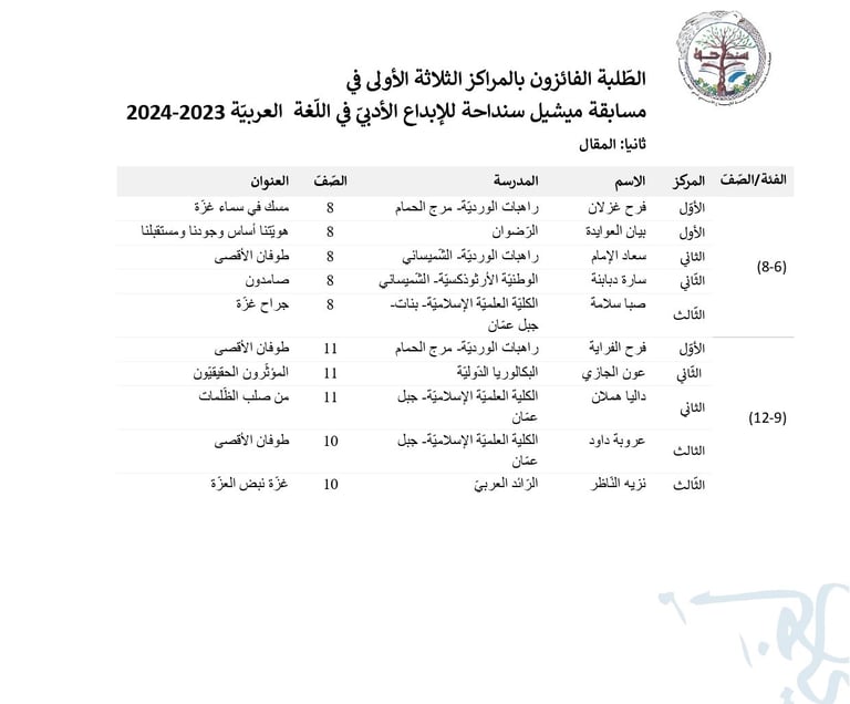 انقر هنا لتنزيل أعمال الطّلبة الفائزين في المقال