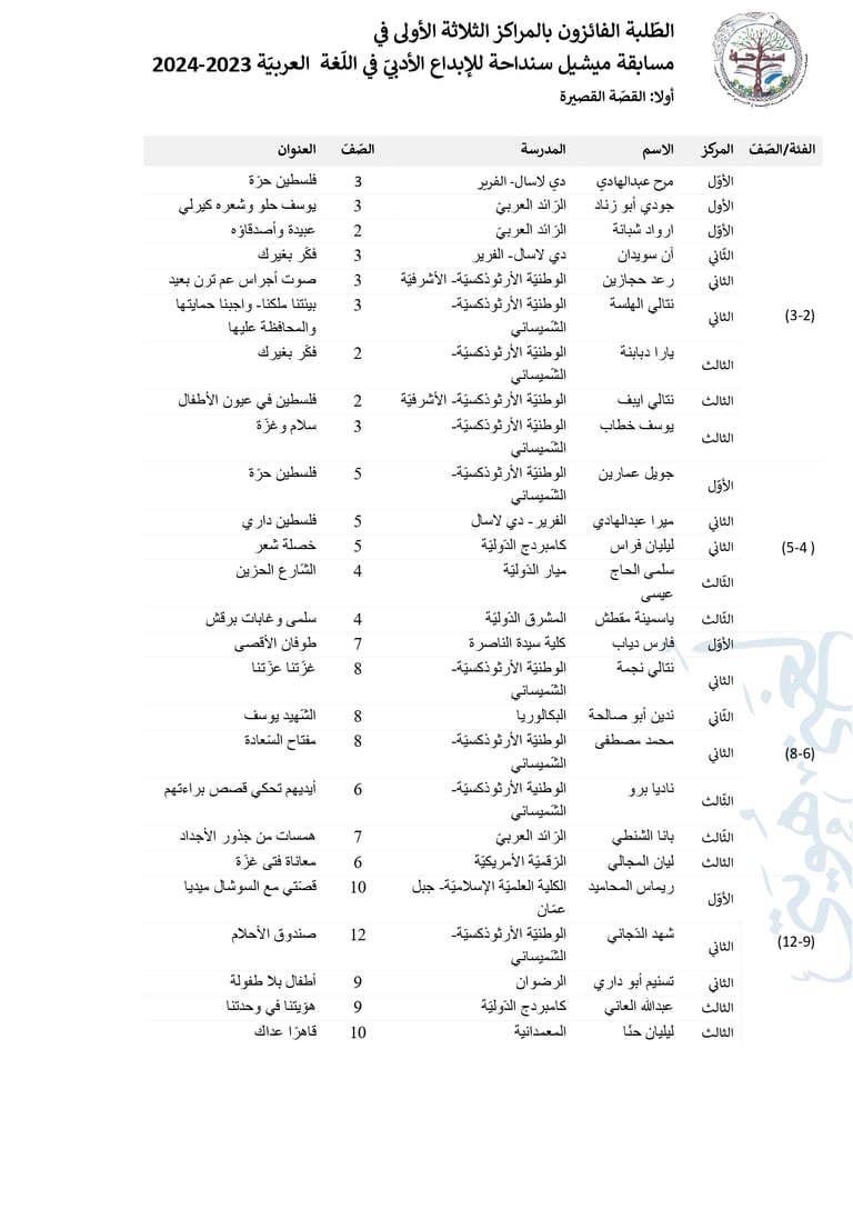 انقر هنا لتنزيل اعمال الطّلبة الفائزين في القصّة