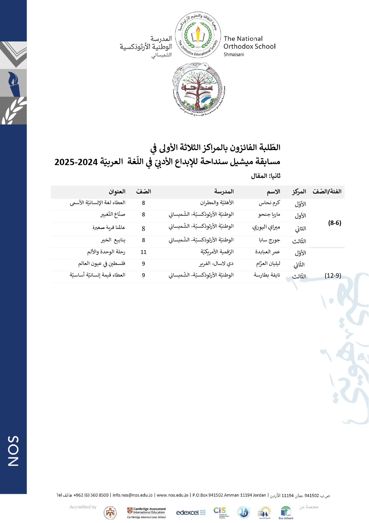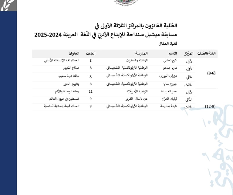 انقر هنا لتنزيل أعمال الطّلبة الفائزين في المقال