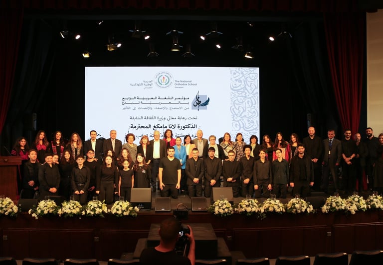 نظّمت المدرسة الوطنيّة الأرثوذكسيّة-الشّميساني السّبت 9 تشرين الثّاني 2024، مؤتمر اللّغة العربية الرّابع المنبثق عن جائزة ميشيل سنداحة للإبداع الأدبيّ، تحت شعار "بالعربية نبدع" بعنوان "من الاستماع والإصغاء والإنصات إلى التّأثير"، وذلك تحت رعاية معالي الدّكتورة لانا مامكغ، وزيرة الثّقافة السّابقة، وبمشاركة 112 معلّم ومعلّمة لغة عربيّة من ستّ عشرة مدرسة بالإضافة إلى متخصّصين في اللّغة العربيّة وإستراتيجيات تدريسها من أكاديميّة الملكة رانيا لتدريب المعلّمين.