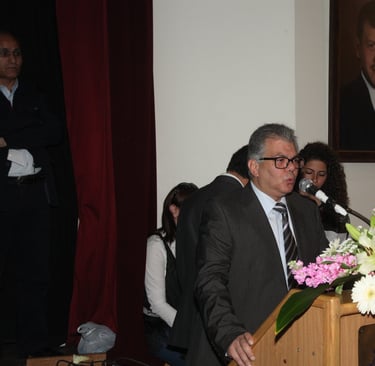 وأنتهز هذه المناسبة لأتقدّم بالشِّكر الجزيل لجمعيّة الثّقافة والتّعليم الأرثوذكسية وهيئتها الإداريّة ولمدرستنا الوطنيّة الأرثوذكسيّة إدارة ومعلّمين وطلبة لتنظيم هذه المسابقة، والعمل الجادّ لغرس حبّ اللّغة العربيّة والاعتزاز بالهويّة الوطنيّة العربيّة لدى الأجيال القادمة.